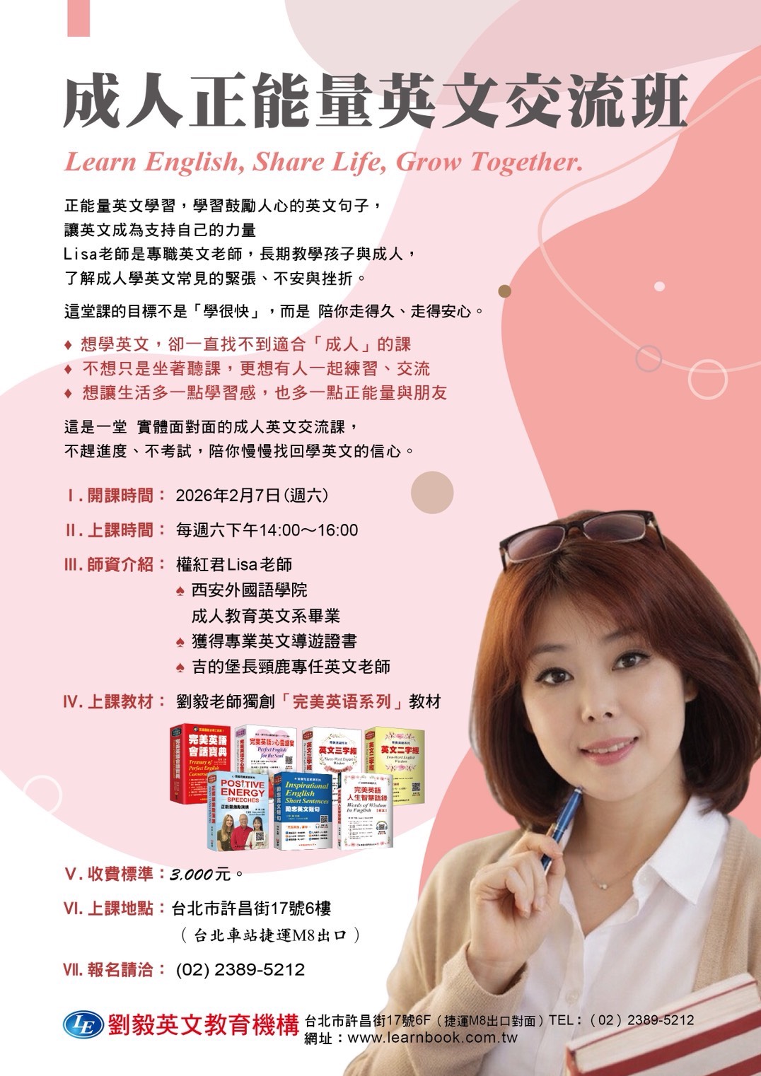 課程序號: EV202602071404 / 課程名稱:成人正能量英文交流班